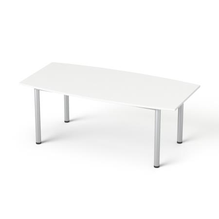 Tárgyalóasztal, íves, szürke fémlábbal, 80/95x190 cm, MAYAH "Freedom SV-43", fehér