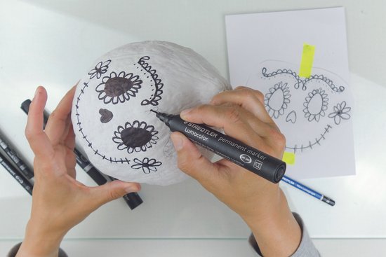 6. Most menjünk át a Lumocolor alkoholos markerrel a mintán, és színezzük ki. El is készült a saját töklámpásunk.