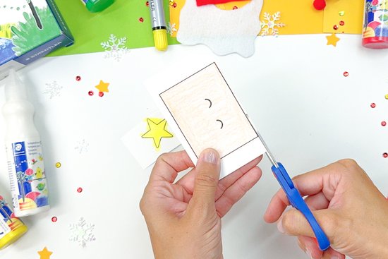 2. Színezzük ki az arcot, az arcocskákat és a csillagot a kalaphoz, majd vágjuk ki ezeket az elemeket.