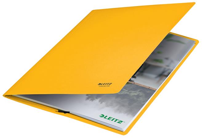 Gumis mappa, karton, A4, LEITZ "Recycle", sárga