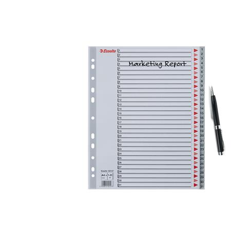 Regiszter, műanyag, A4 Maxi, 1-31, ESSELTE, szürke