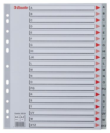 Regiszter, műanyag, A4 Maxi, A-Z, ESSELTE, szürke