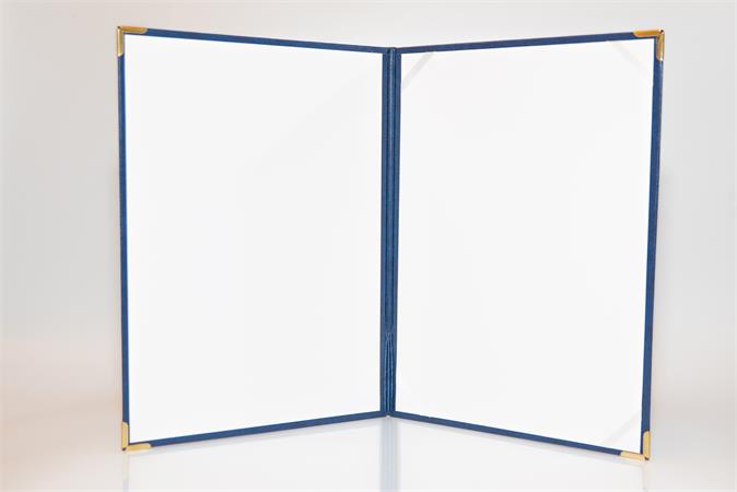 Oklevéltartó, A4, exkluzív, műbőr, 4 fém sarokkal, kék
