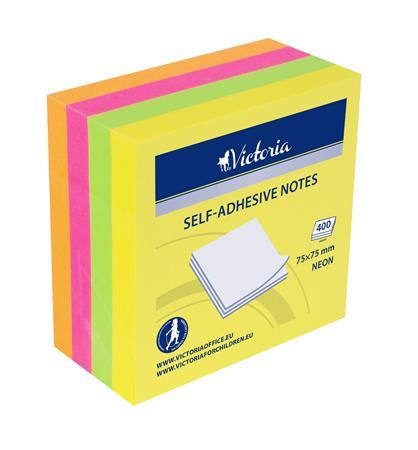 Öntapadó jegyzettömb, 75x75 mm, 400 lap, VICTORIA OFFICE, neon