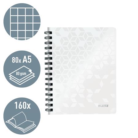 Spirálfüzet, A5, kockás, 80 lap, LEITZ "Wow", fehér