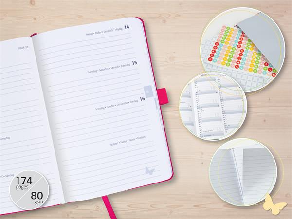 Naptár, A5, heti, 2025, kemény boritó, SIGEL "Jolie", fekete-pink