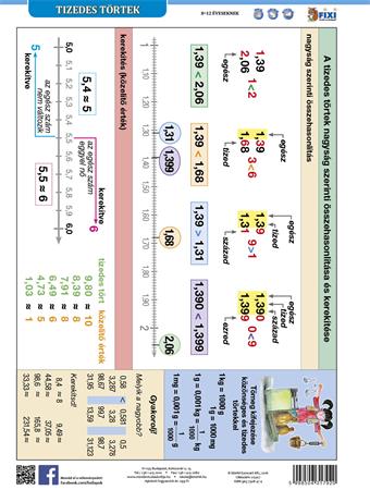 Tizedes törtekkel kapcsolatos alapismeretek. A tizedes törtek nagyság szerinti összehasonlítása és kerekítése, közönséges törtek átírása tizedes törtekké és azok ábrázolása számegyenesen.Nemcsak tanít, hanem gyakoroltat is.Önálló tanulásra is alkalmas, hiszen a gyakorlófelületen gyakorolhat is.