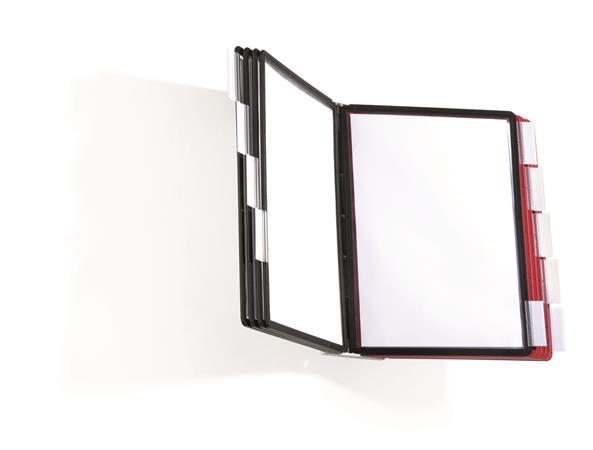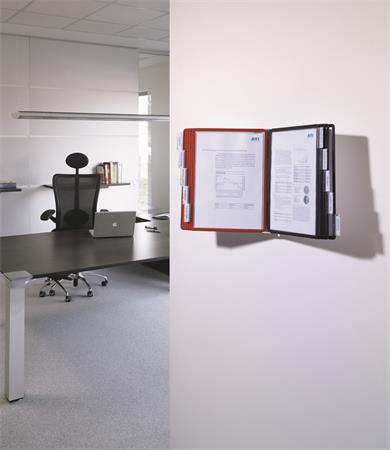 Bemutatótábla tartó, fali, 10 db bemutatótáblával, DURABLE "SHERPA WALL", piros