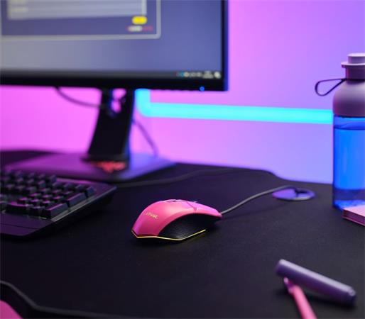 Egér, vezetékes, optikai, gaming, LED, TRUST "GXT109P Felox", rózsaszín